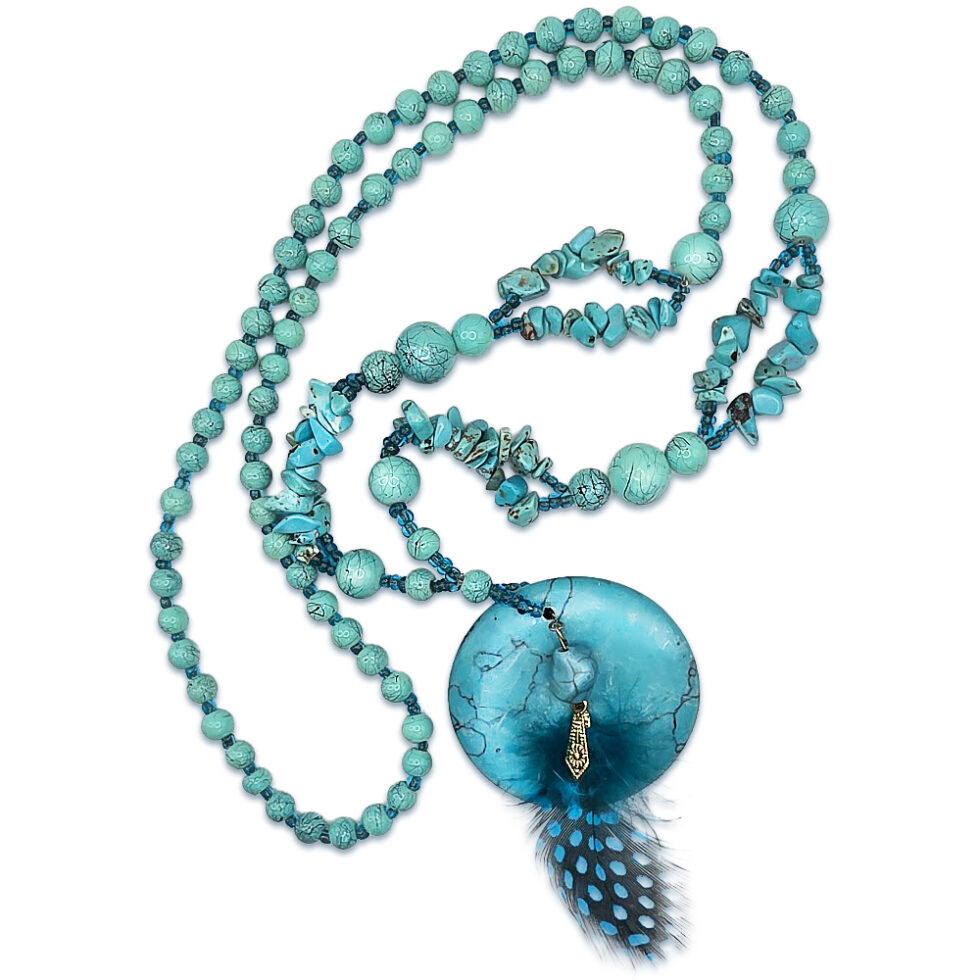 Ez a kézzel készített, extra hosszú nyaklánc a bohém és az etnikai stílus tökéletes ötvözete, amelyet a türkiz ásvány élénk árnyalatai inspiráltak.
