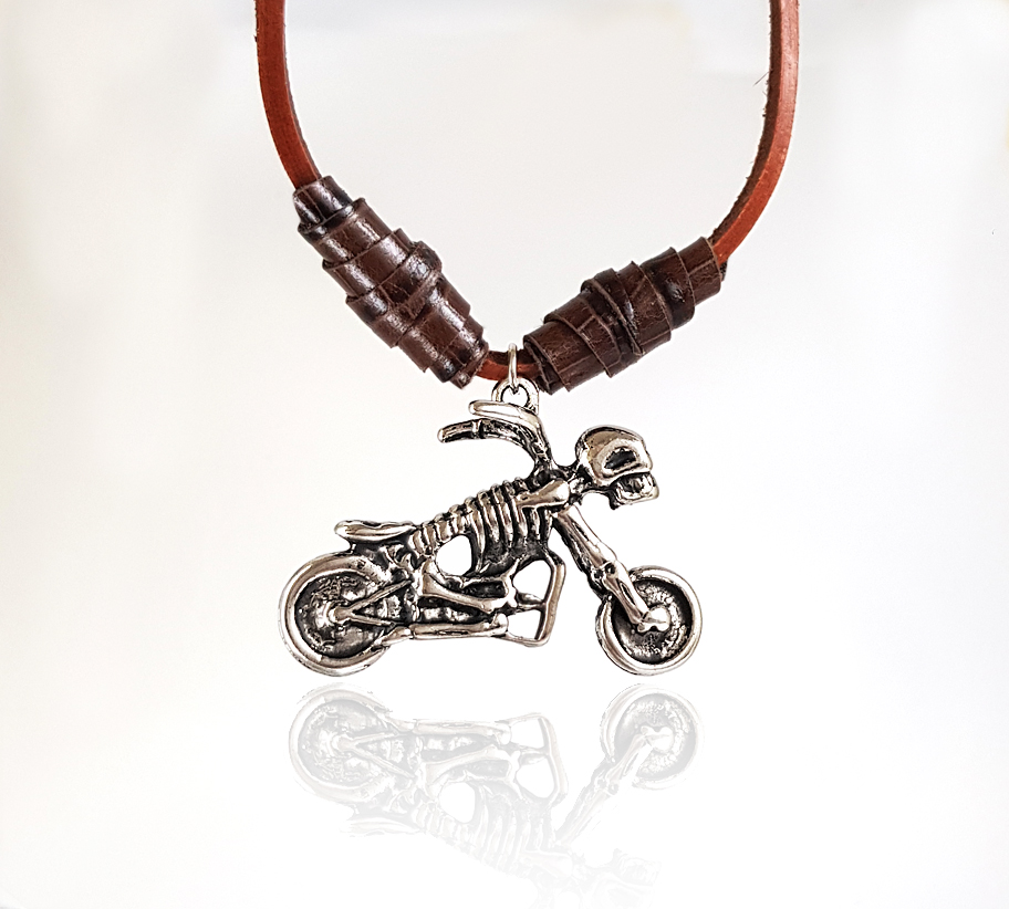 Chopper csontvázas motor férfi bőr nyaklánc
