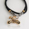 A 6 mm-es fekete csavart zsinór végén fekete bőr, valamint arany színű vékony bőrzsinór díszítés van, majd nemesacél végét kerek rugós kapocs zárja ,melyen cserélhető medál helyezkedik el.