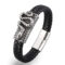 A 12 mm-es fekete fonott bőrből készült karkötő nemesacél szépen kidolgozott kígyó motívumot ábrázol.