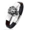 Egyedi és különleges, ez az oroszlános bőr karkötő, a motívum szépen kidolgozott,megmunkált darab. A fekete magas minőségű fonott, és a középső részt díszítő barna marhabőr elegáns darab.
