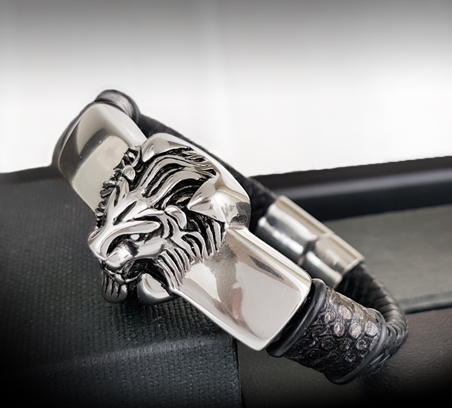 A karkötő elején nemesacél oroszlánfej motívum van, mely 4 cm.