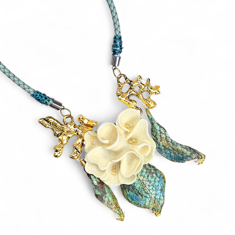 Rózsás bőrnyaklánc egzotikus bőrrel