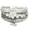 A karkötő 5 sávos különböző zsinór egyveleggel pompázik. A szürke fazettált gyöngyök, az ezüst színü fémköztesek ,valamint a fénylő metál szálak kellemes összhangot teremtve váltják egymást.
