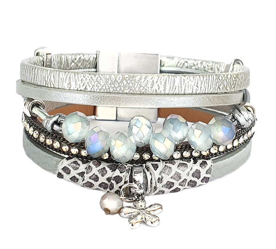 A karkötő alsó szürke szála egy kígyómintás bőr díszítést kapott, kiemelve a karkötő eleganciáját.