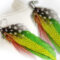 Különböző színű tollak keveréke. pisztácia színű bőr és gyöngytoll diszitéssel. Antiallergén fém , fülbeakasztós.